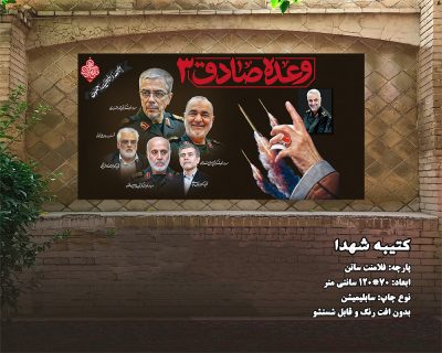 کتیبه شهدا جنس پارچه: فلامنت ساتن ابعاد: 70*120 سانتی متر نوع چاپ: سابلیمیشن بدون افت رنگ و قابل شستشو